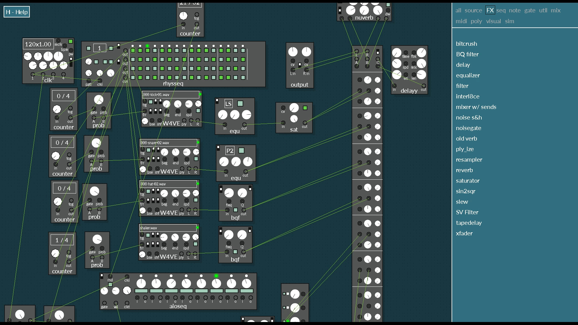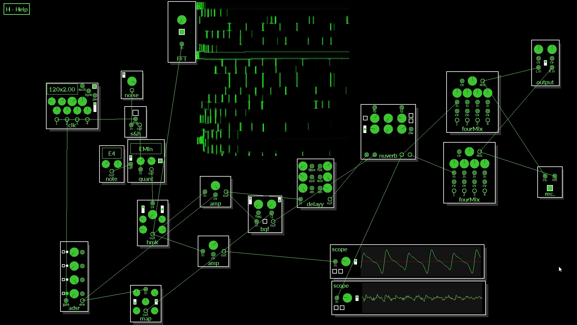Install the Visual C++ Redistributable from Microsoft (or use provided vc_redist.x64.exe) if you need to and just use QTSynth.exe. Drag modules from the sidebar onto the workspace, connect cables and tweak knob/button/parameters to make noise. Pressing the ‘H’ key will expand the help menu, where you can see all controls/hotkeys. Hovering over a module with the help menu expanded will show a short description of the module.